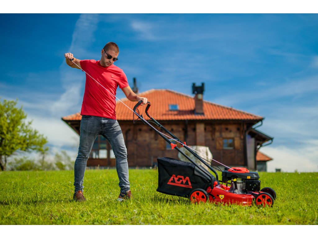 Benzínová sekačka AGM 4619 R s konstantním pojezdem je výtečným řešením pro údržbu vašeho trávníku od jara do podzimu, pokud hledáte sekačku za dostupnou cenu, při vysoké kvalitě a komfortu. Sekačku využijete i při sběru spadaného listí.