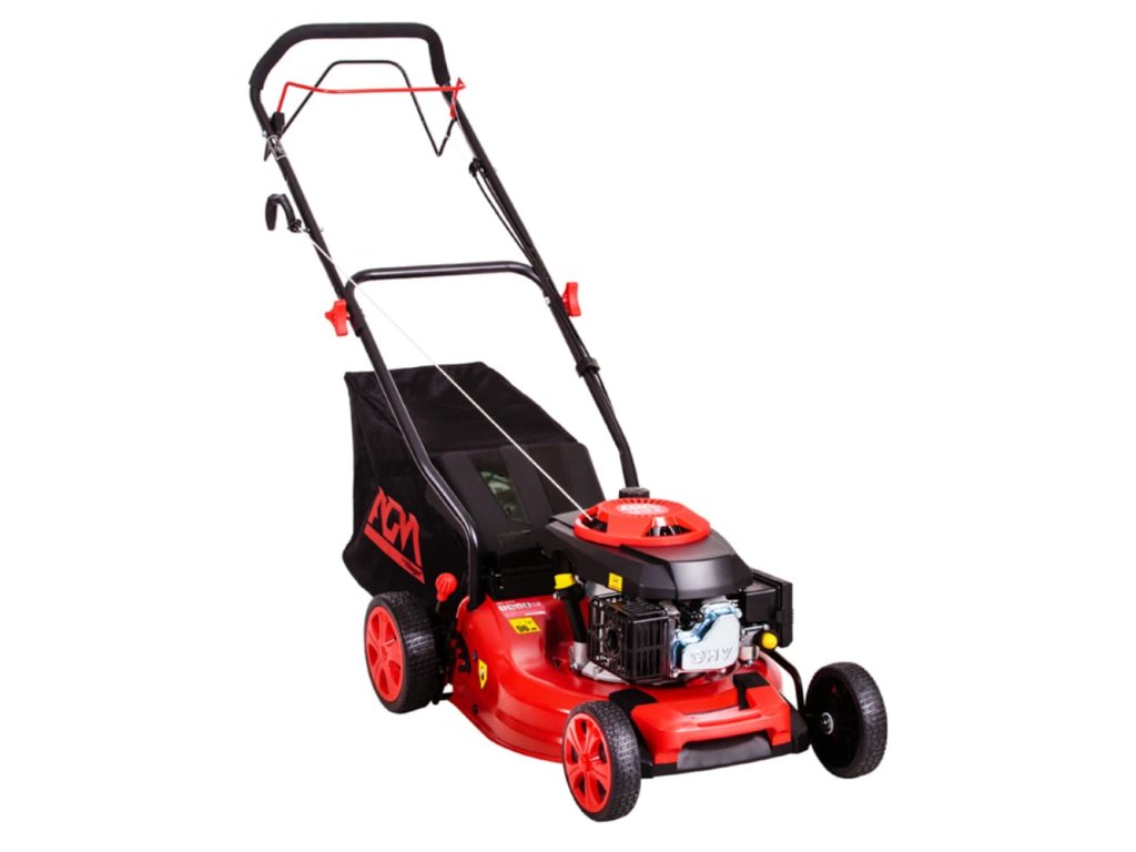 Benzínová sekačka AGM s konstantní rychlostí pojezdu, čtyřtaktním motorem o obsahu 146 cm3 a výkonem 2,6 kW, 50 litrovým košem na trávu. Záběr sečení 46 cm, ocelové šasi. Ideální pro zahrady do 800m2.