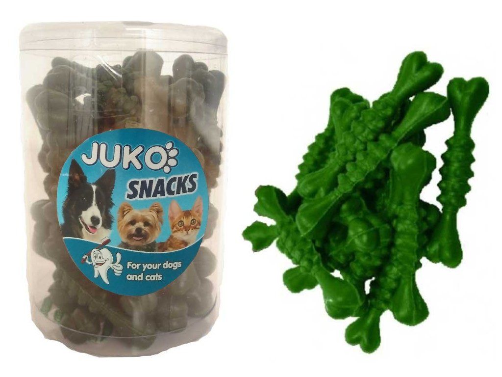 Chutná a lehce stravitelná dentální pochoutka s jemnou mint chutí ve tvaru kostičky.