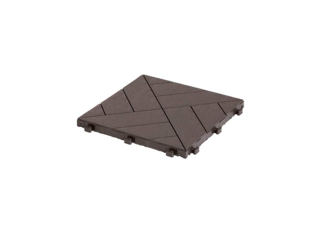 Gumová terasová dlaždice Arista v elegantním designu, v hnědé barvě. Vyrobeno z pryžového recyklátu, což zaručuje vysokou odolnost a dlouhou životnost. Velikost 30 x 30 cm