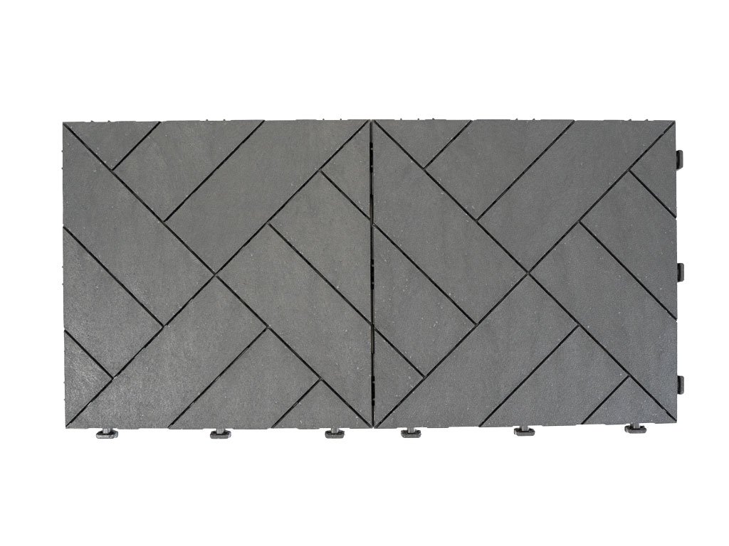 Gumová terasová dlaždice Arista v elegantním designu, v šedé barvě. Vyrobeno z pryžového recyklátu, což zaručuje vysokou odolnost a dlouhou životnost. Velikost 30 x 30 cm