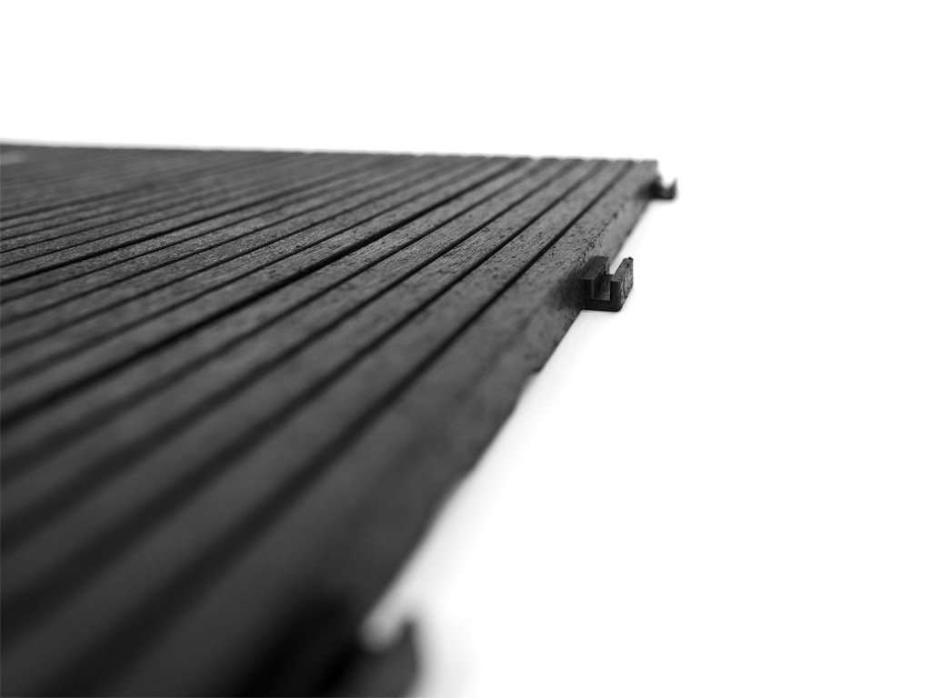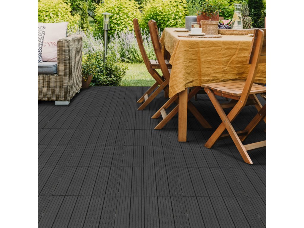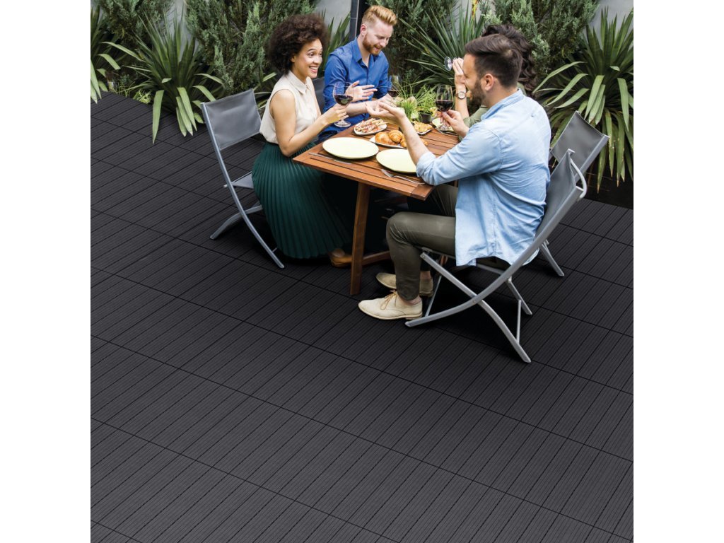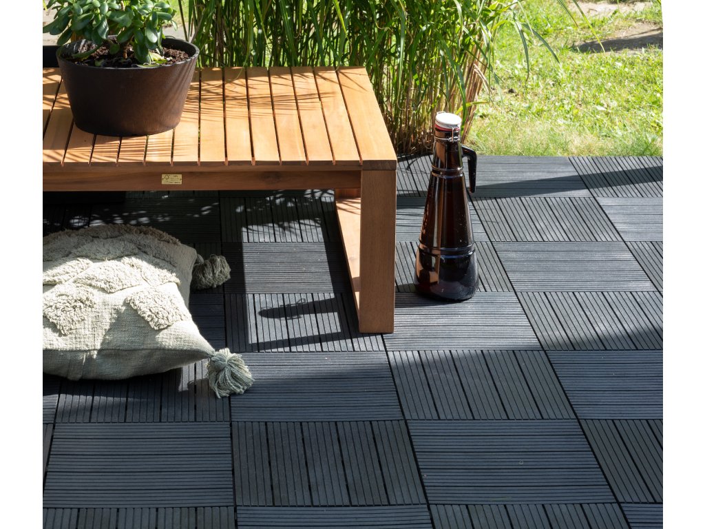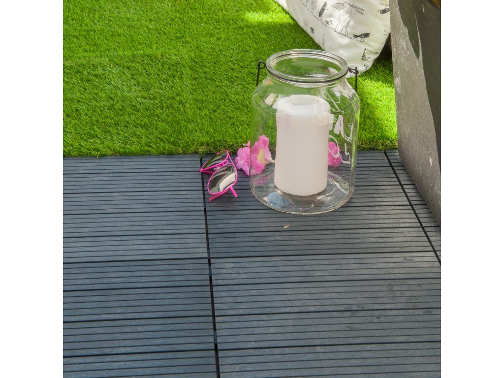Gumová dlaždice 30 x 30 cm, výška 1,5 cm, v antracitové barvě. Směs gumové pryže a polypropylenu s dlouhou životností a vysokou odolností. Velmi snadná montáž.