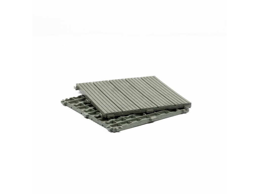 Gumová dlaždice 30 x 30 cm, výška 1,5 cm, v zelené barvě. Směs gumové pryže a polypropylenu s dlouhou životností a vysokou odolností. Velmi snadná montáž.