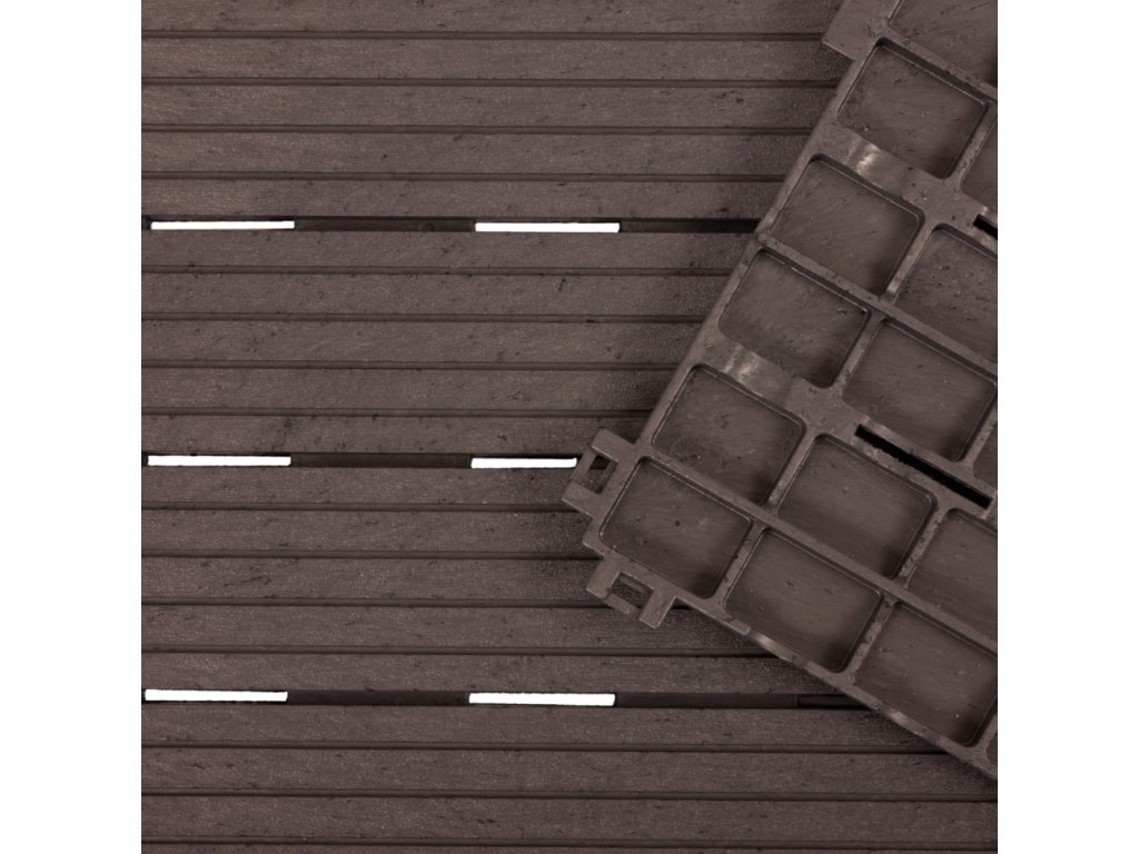 Gumová terasová dlaždice Extreme Cosmopolitan v elegantním designu, v hnědé barvě. Vyrobeno z pryžového recyklátu, což zaručuje vysokou odolnost a dlouhou životnost. Díky spojovacímu systému, je montáž velmi jednoduchá. Velikost 45,5 x 45,5 cm a zesílená výška 2,5 cm.