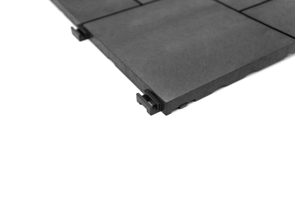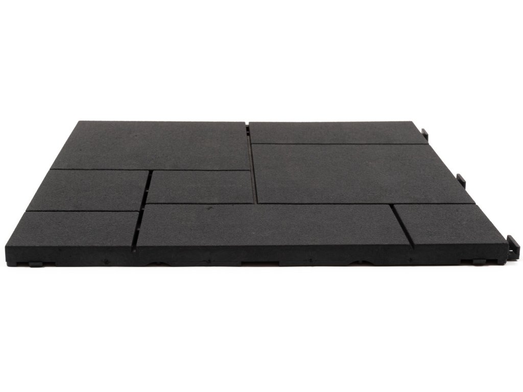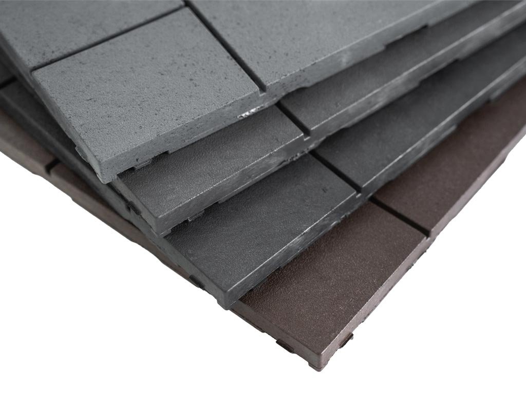 Gumová dlaždice 30 x 30 cm, výška 1,4 cm, v antracitové barvě. Směs gumové pryže a polypropylenu s dlouhou životností a vysokou odolností. Velmi snadná montáž.