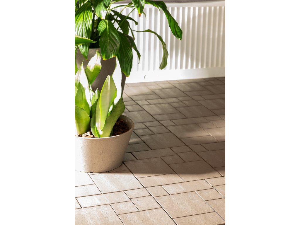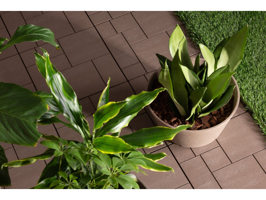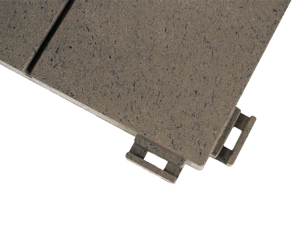 Gumová dlaždice 30 x 30 cm, výška 1,4 cm, v dubově hnědé barvě. Směs gumové pryže a polypropylenu (100% recyklované materiály) s dlouhou životností a vysokou odolností. Velmi snadná montáž.