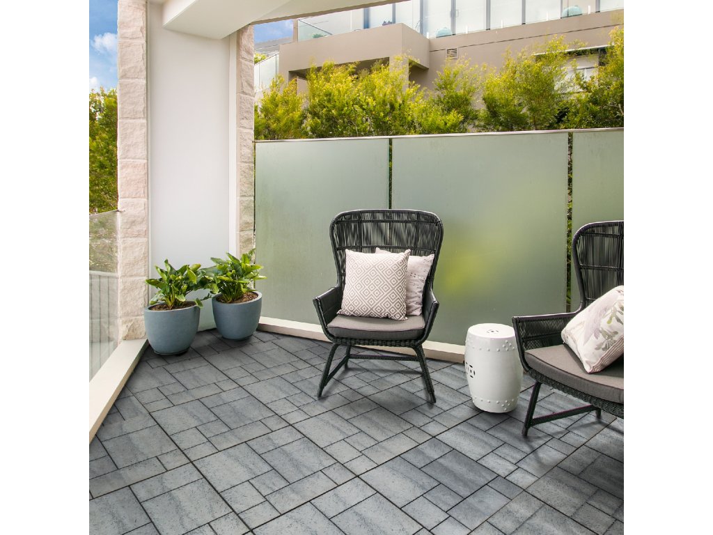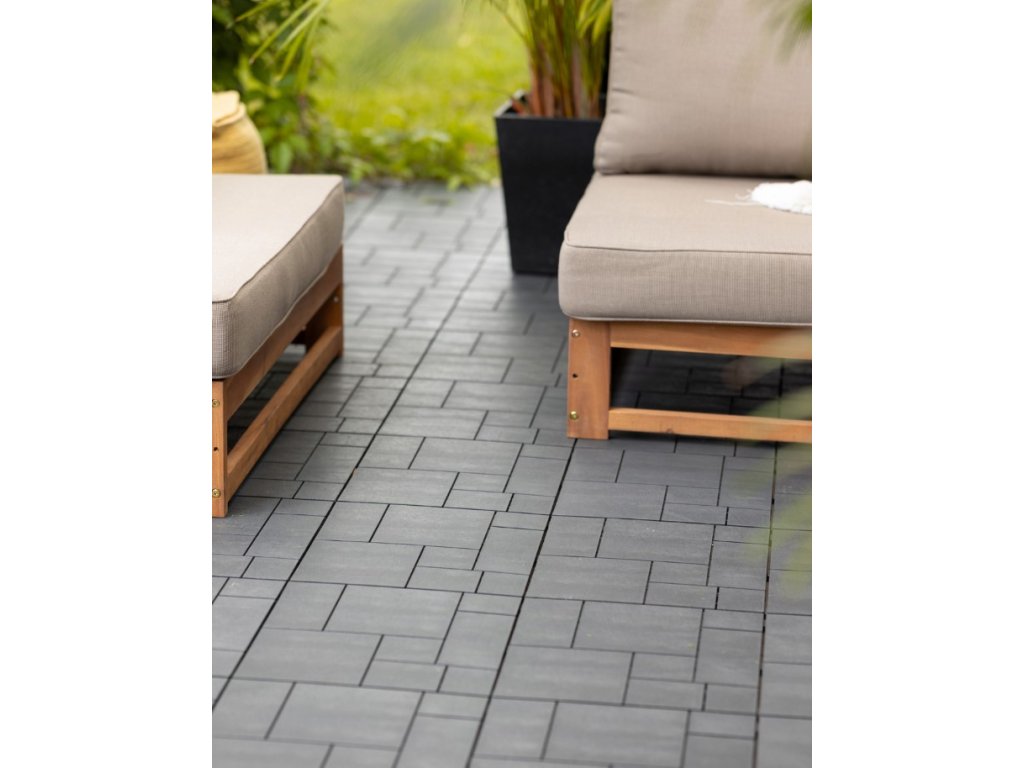 Gumová dlaždice 30 x 30 cm, výška 1,4 cm, v šedé barvě. Směs gumové pryže a polypropylenu s dlouhou životností a vysokou odolností. Velmi snadná montáž.