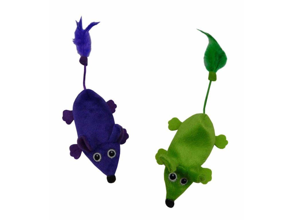 Hračka pro kočky ve tvaru myši. Bez výplně. Šustí. Na ocase peří.