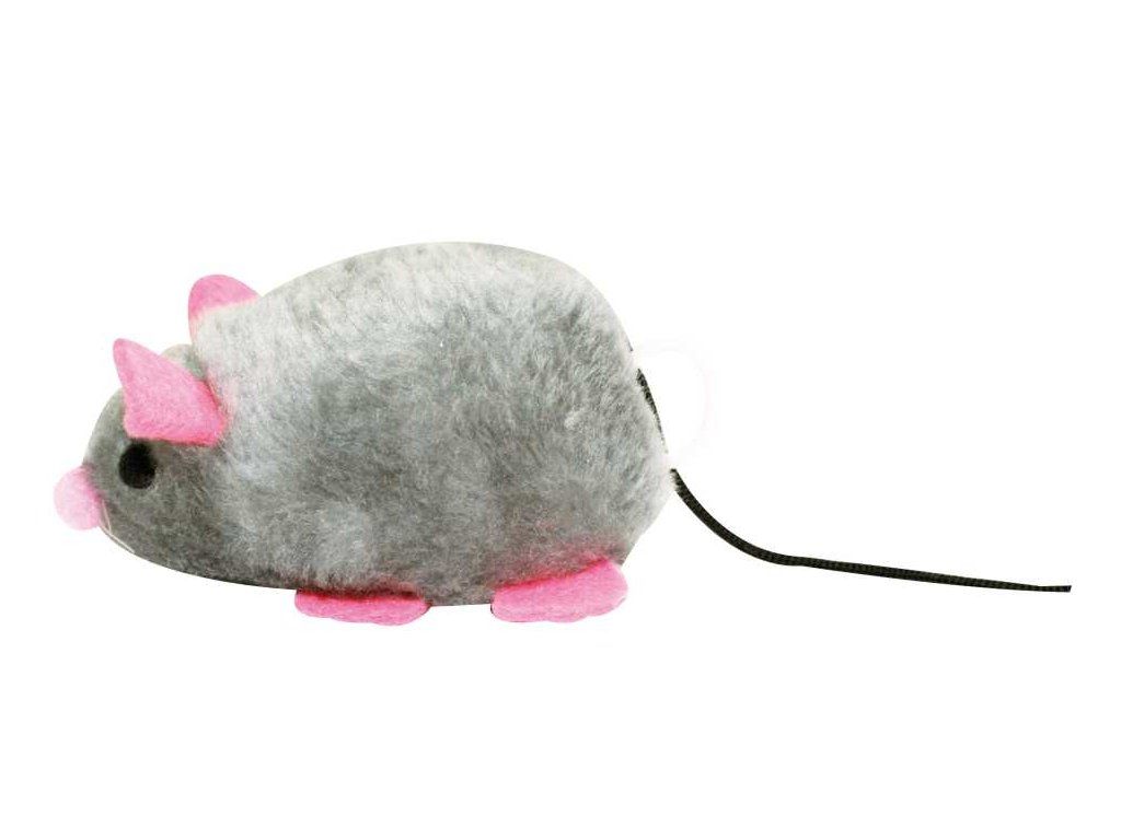 mechanická hračka určena pro kočky. Po natažení se hračka chvěje a provázek se navinuje zpět do původní délky.