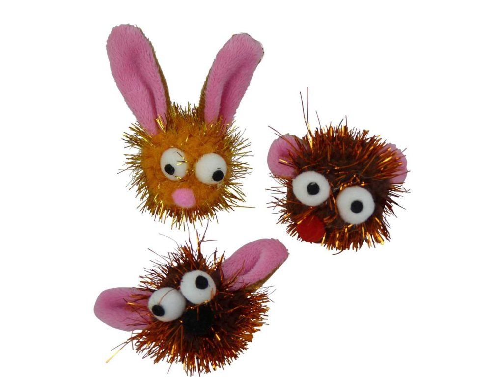 Obličej s ušilegrační obličej s ušima - měkká hračka pro kočky, snadno zaujme díky odrážení světla na vláknech.velikost cca 4cmILUSTRATIVNÍ FOTO