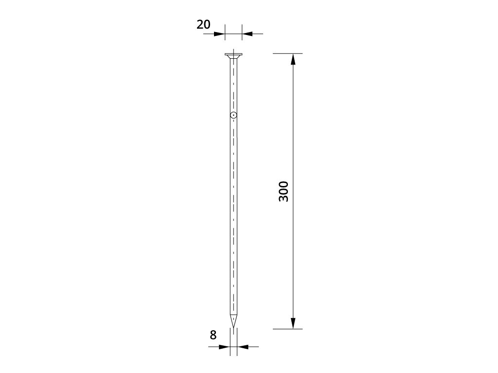 - rozměr: 300 x 8 mm, průměr hlavičky 20 mm