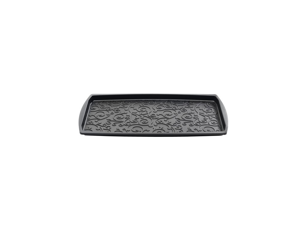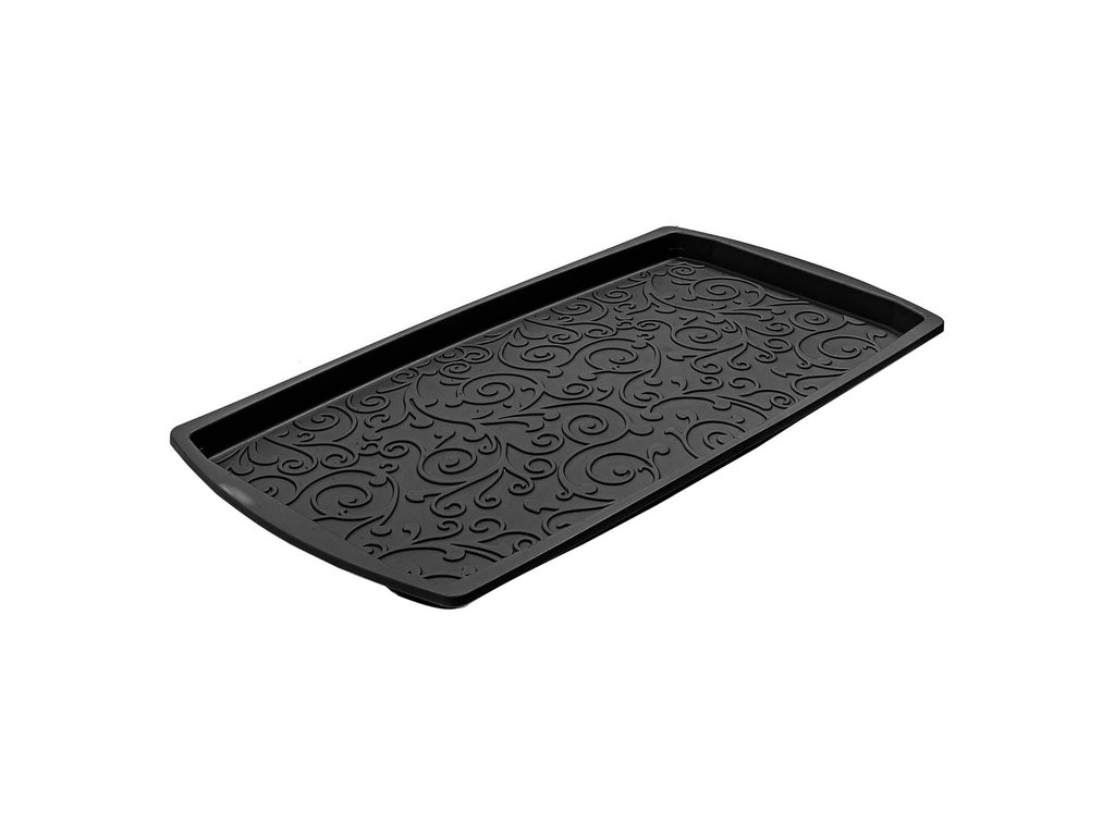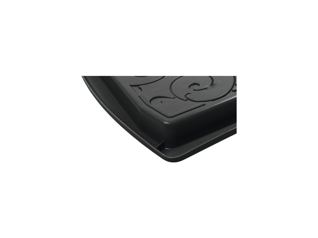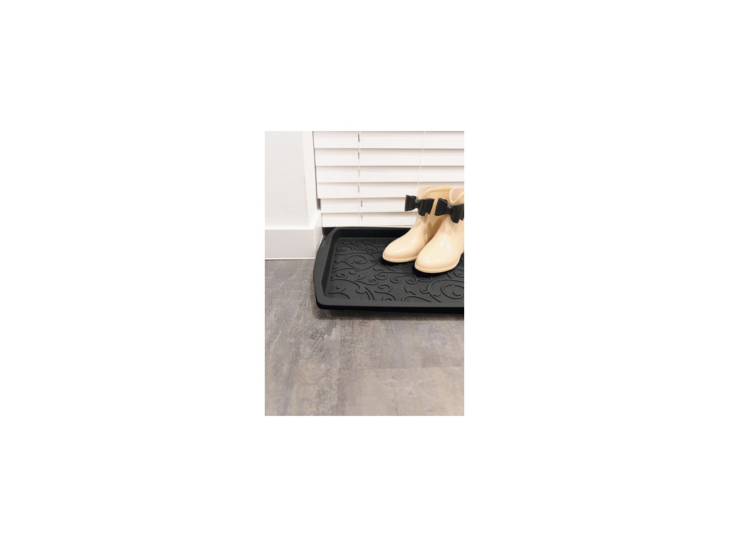 Černý víceúčelový odkapávač nejen na boty - rozměry 37,7 x 73,3 x 3 cm, vyrobeno z recyklované gumy. Tento plastový odkapávač na obuv je skvělým řešením pro všechny domácnosti, které hledají praktický způsob, jak uchovávat mokrou obuv suchou a čistou.