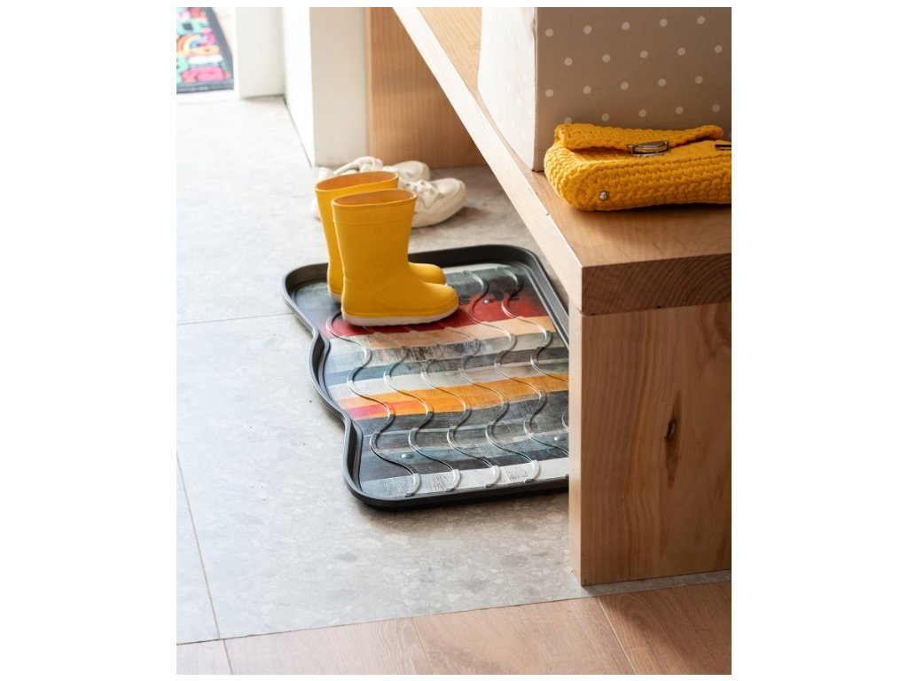 Víceúčelový odkapávač nejen na boty se stylovým designem - rozměry 38 x 75 x 2,5 cm, vyrobeno z recyklované gumy.