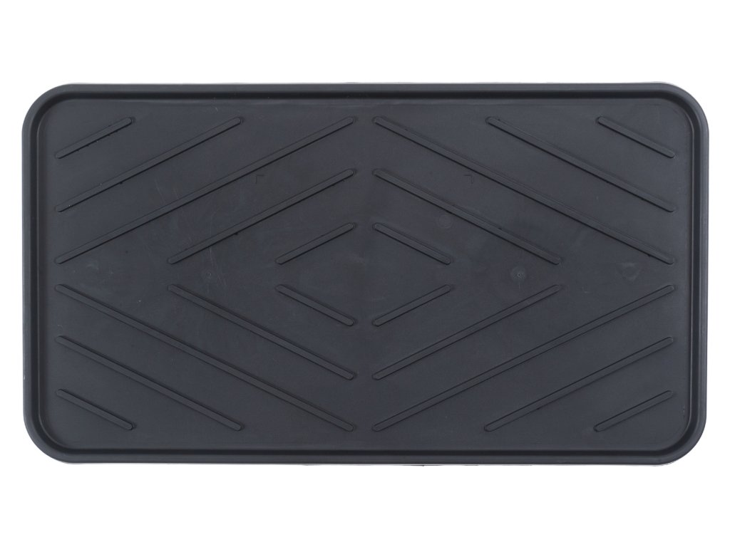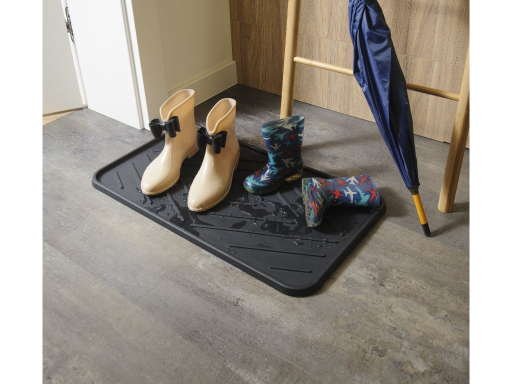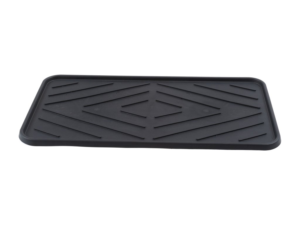 Černý víceúčelový odkapávač nejen na boty - rozměry 35,3 x 63,5 x 1,4 cm, vyrobeno z recyklované gumy.