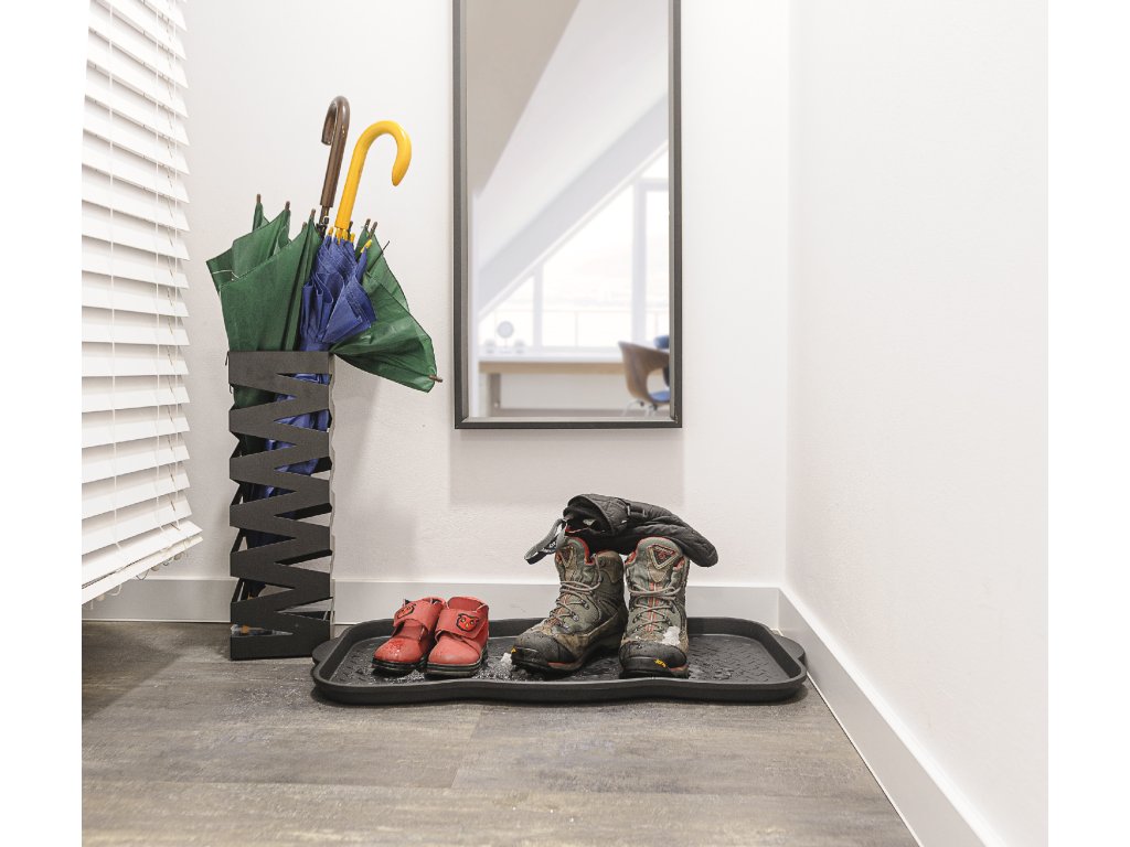 Černý víceúčelový odkapávač nejen na boty - rozměry 38,3 x 76 x 3 cm, vyrobeno z recyklované gumy.