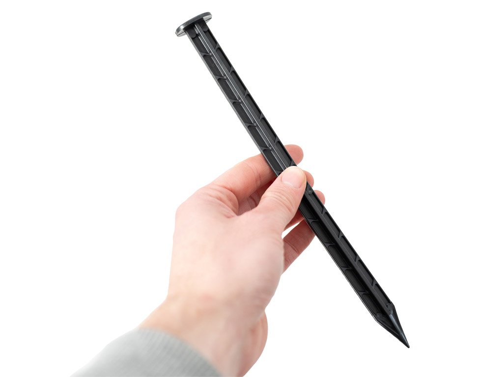 Pořídili jste si neviditelné plastové obrubníky nebo zatravňovací dlažbu? Pro jejich ukotvení je potřeba mít plastové nebo ocelové kotvící hřeby.