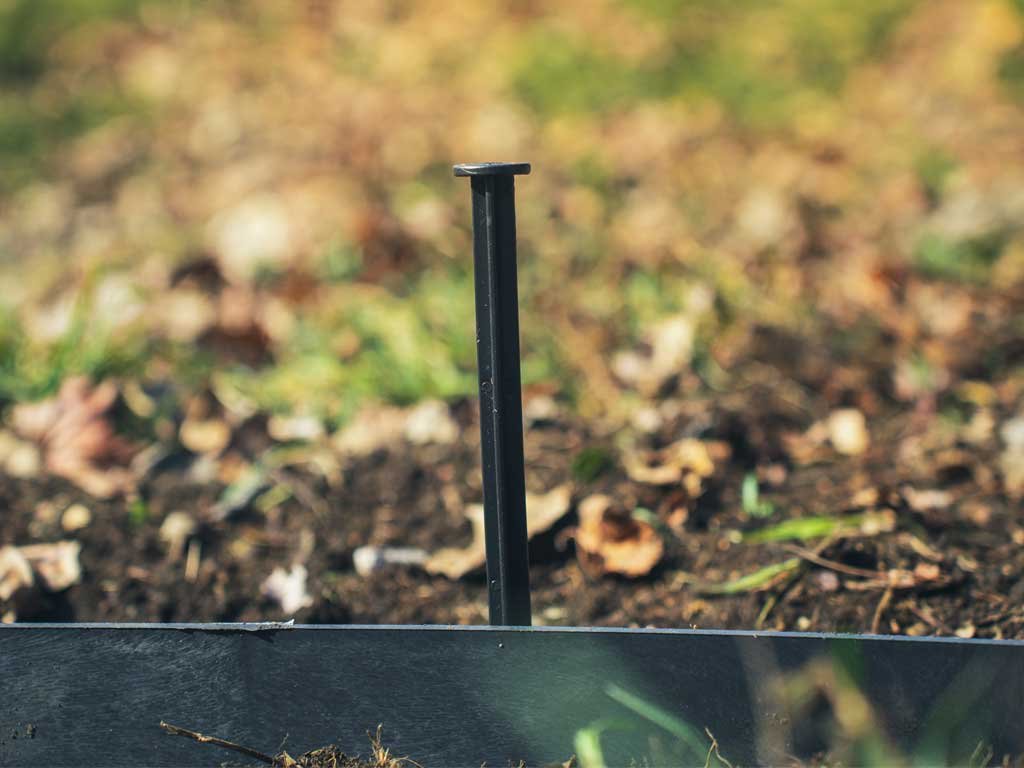 Obrubníky je nutné při pokládání postupně ukotvovat - instruktážní video. Plastové kotvicí hřeby využijete především při kotvení do běžného podloží - například do zkypřené zeminy. naopak využijete na místech, kde se setkáte s hutnějším podložím - například jílovité půdy.