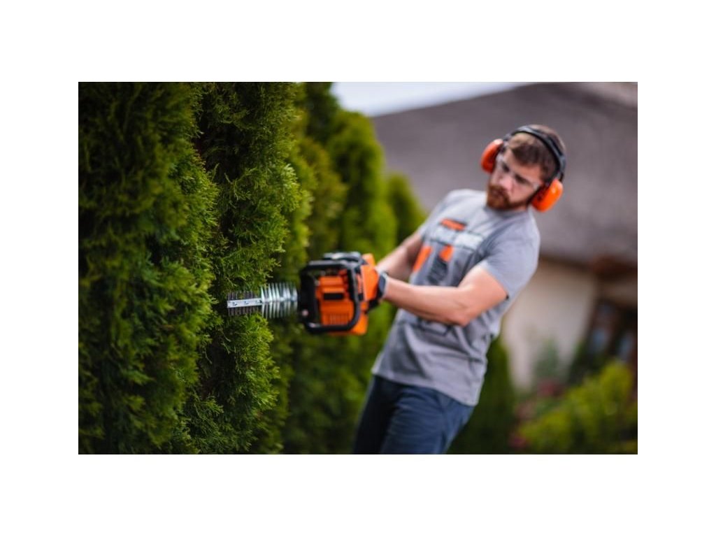 Profesionální, dvojitá, protiběžná žací lišta o řezné délce 60 cm, vám dovolí upravit porosty až o průměru 20 mm. Otočná zadní rukojeť je vybavena prodlouženou spouští a opatřena pogumováním pro pohodlné stříhání pod jakýmkoliv úhlem. Samozřejmostí jsou bezpečnostní prvky, jako dvouruční ovládání, elektrická brzda, antivibrační systém a ochranný štít, který zaručí vaší bezpečnost při manipulaci s plotostřihem.