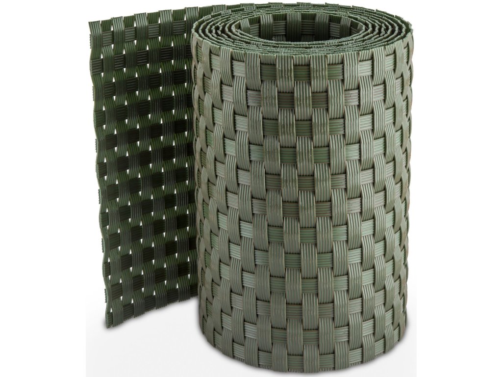 Oboustranný ratanový plotový pás z umělého ratanu o rozměru 0,19 x 2,55 m a v zelené barvě chrání vaše soukromí po celý rok. Je odolná vůči slunci, větru i vodě, s UV ochranou z obou stran. Sedí do standardních plotových panelů o délce 2,5 m a výšce oka 20 cm. Dodáváme v praktických malých rolích pro snadnou instalaci.