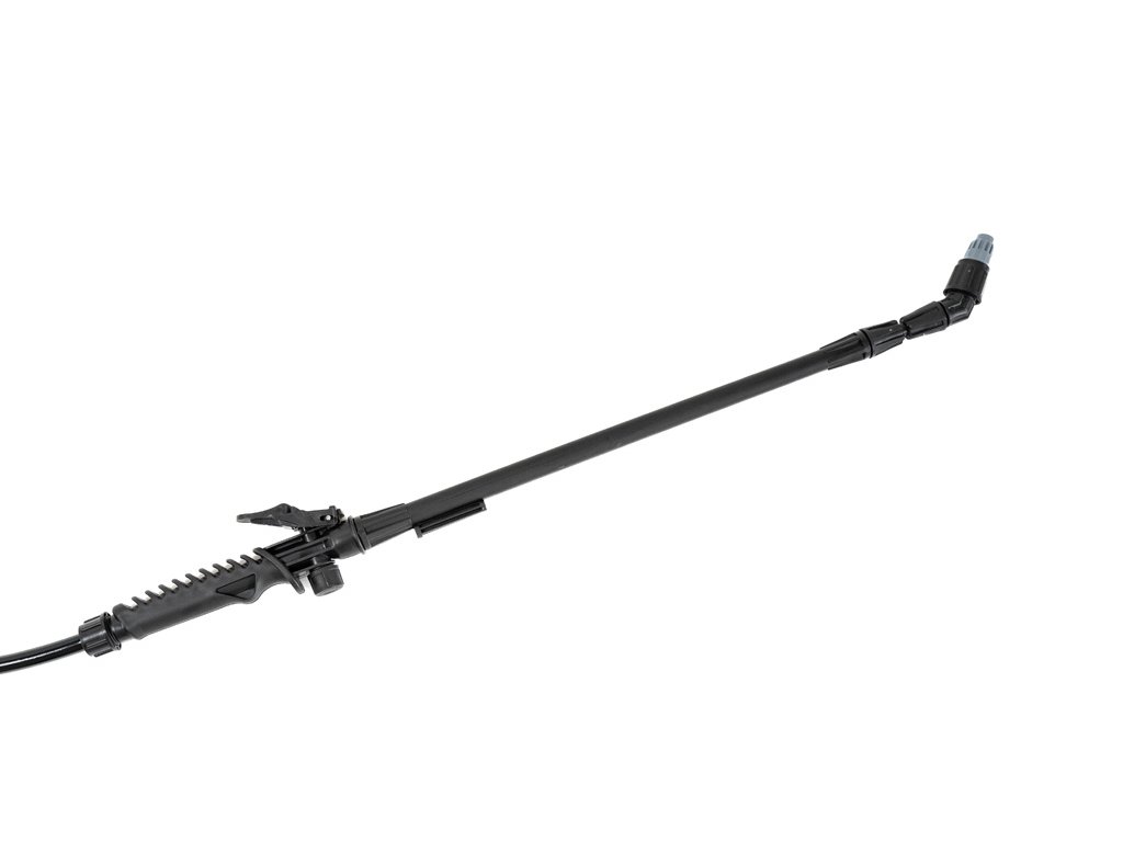 tryska pro aplikaci je individuálně nastavitelná, teleskopický nástavec lze prodloužit z 60 cm na 120 cm a vzdálenost dostřiku je tak až 3 m. Velkou výhodou postřikovače je nízká hmotnost 1,35 kg.