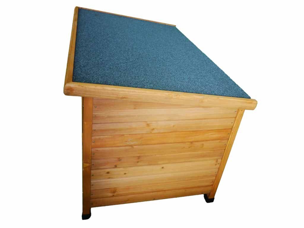 Kenniva Besi psí bouda je vyrobena z jedlového dřeva. Pultová střecha je pokryta asfaltovým bitumenovým pásem. Rozměry: 115 cm × 78 cm × 80 cm. Snadná montáž.