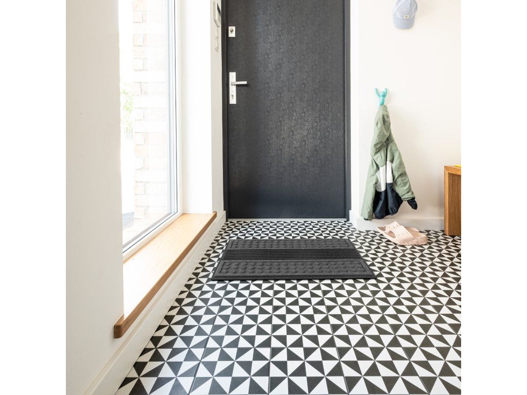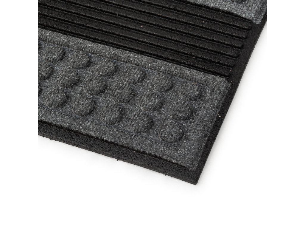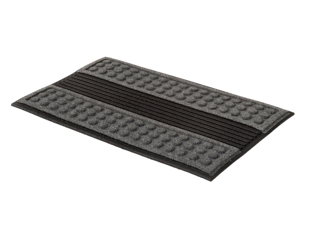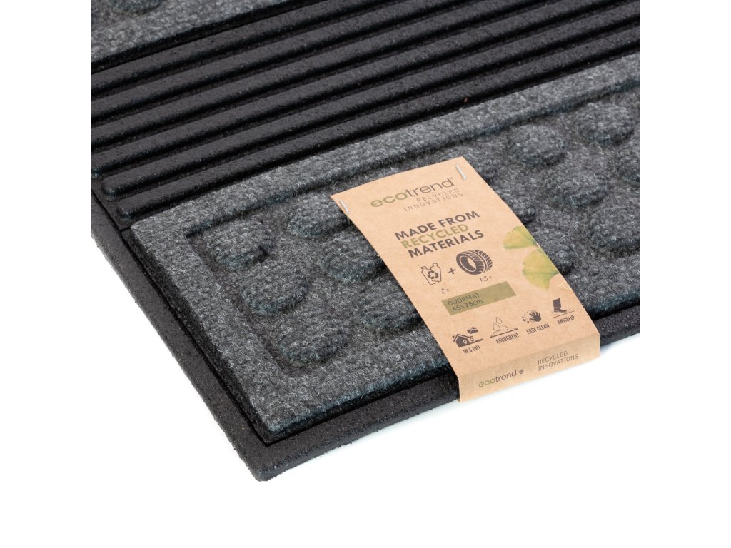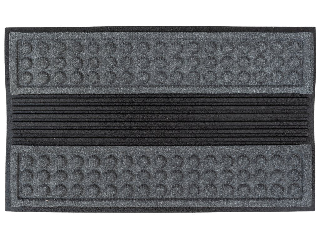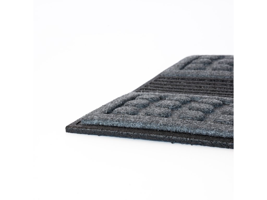 Šedá rohožka před dveře - rozměry 45 x 75 x 1,2 cm, vyrobeno z recyklované gumy.