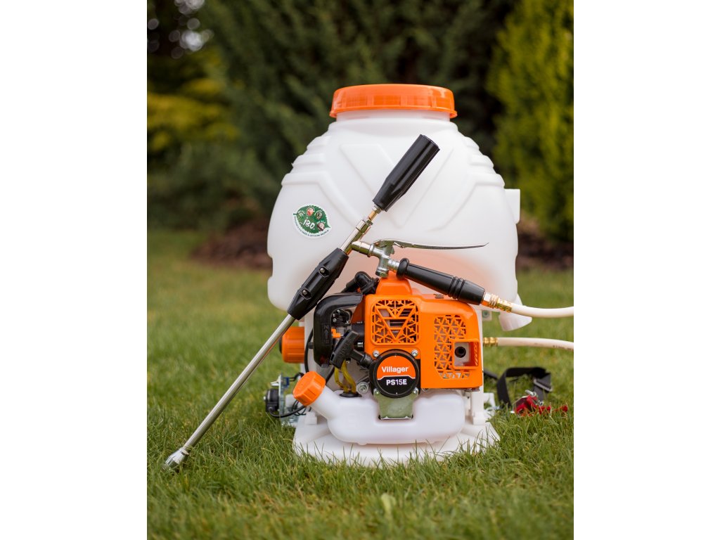 Benzínový postřikovač značky VILLAGER PS 15 E je výkonný, flexibilní postřikovač určený pro použití k ošetření sadů, lesních porostů, nebo při pěstování zeleniny a ovoce na velkých plochách. Je vhodný pro stříkání látek, jako jsou: insekticidy, fungicidy a činidla pro ošetření osiva. Je to skvělý pomocník při ochraně výsadby před chorobami a škůdci. Konstrukce postřikovače je jednoduchá, odolná, kompaktní a lehká na údržbu. Zádový postřikovač PS 15 E má vysoký tlak, velký průtok a výbornou účinnost, takže ochranný efekt je viditelný.