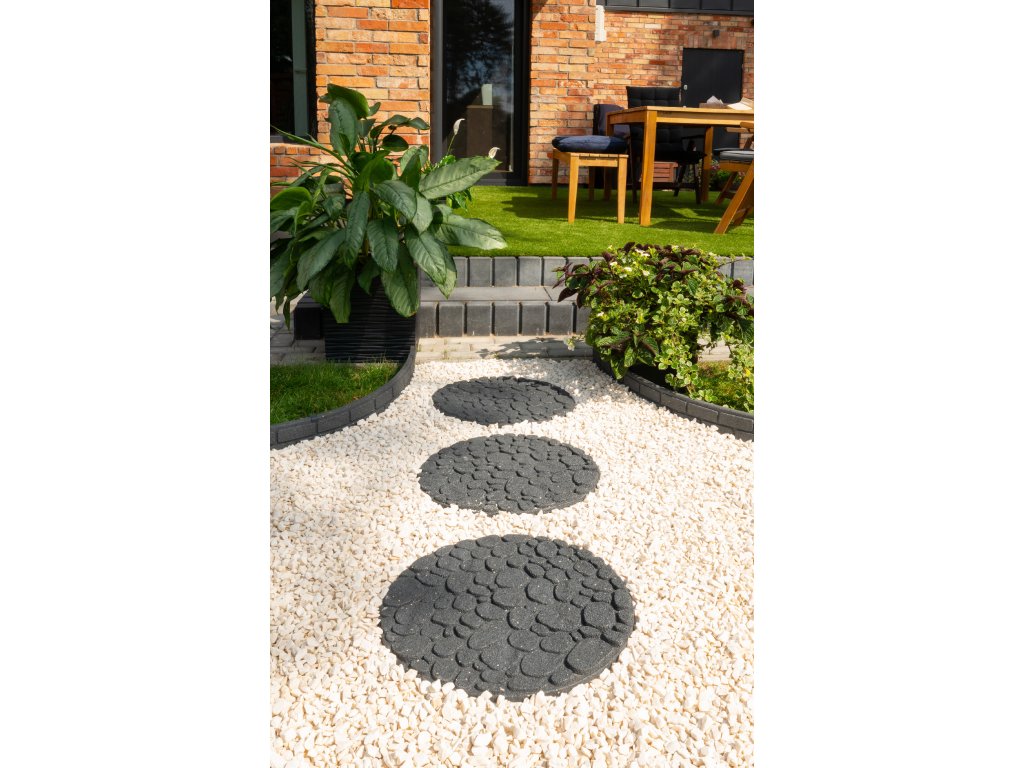 Dekorativní EKO zahradní nášlap Cracked Log se hodí pro tvorbu cest v záhonech nebo travních plochách. Nášlap je vyroben z pryžového recyklátu a díky tomu je odolný, snadno omyvatelný a vydrží změny počasí. Průměr nášlapu 46 cm.
