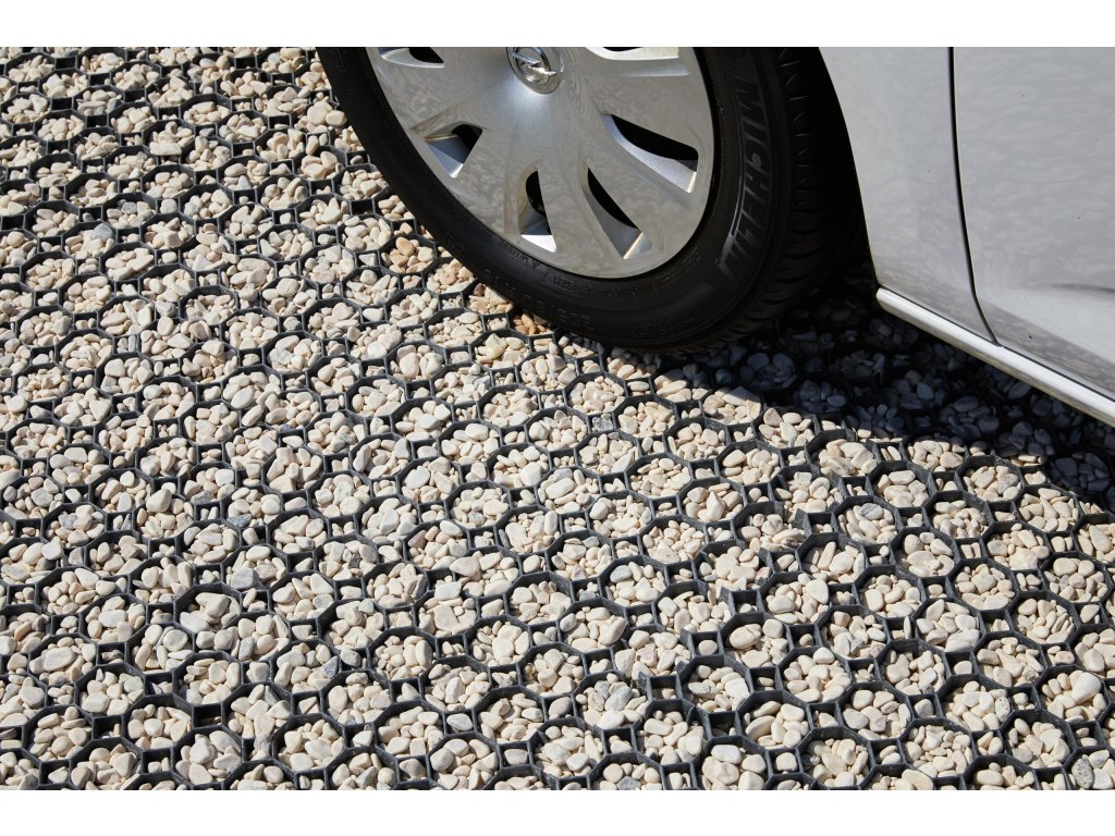 Zatravňovací dlažba se převážně využívá pro zpevnění travnatých ploch. Konstrukční systém tvárnice, který využívá kotvících trnů a kvalitních zámků zajišťuje maximální stabilitu při pojezdu či parkování vozidel a zároveň nebrání vsakování srážek. Ve srovnání s betonovými tvárnicemi umožňuje větší zatravnění (více než 80 %) a vytváří tak přírodní ráz této plochy.