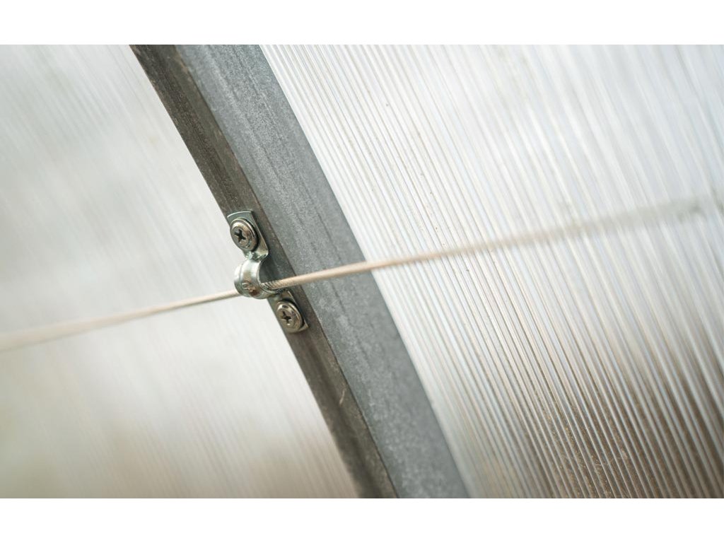 Tato závěsná sada LEGI pro obloukové skleníky (vhodná nejen pro skleníky LEGI) je ideálním řešením, pokud se věnujete pěstování popínavých rostlin, jako jsou rajčata, okurky a květiny, které můžete snadno připevnit k nataženému lanu. Každá sada obsahuje ocelová lana, provlékací oka a šrouby.