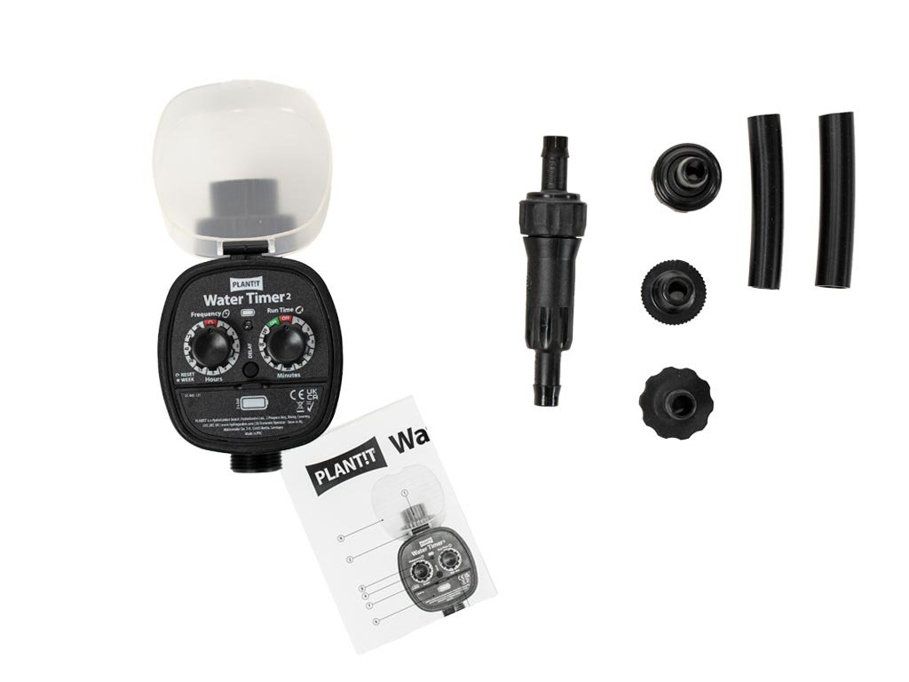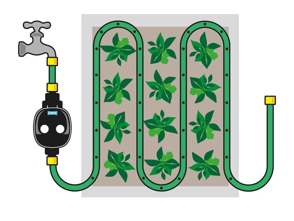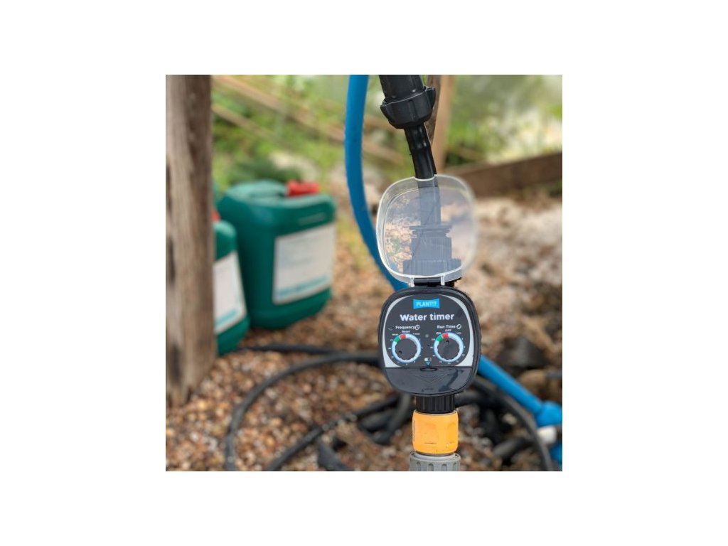 Automatické zavlažovací hodiny Plantit, které vám díky nastavení doby a intervalu zavlažování zajistí tu nejlepší závlahu pro váš skleník. Hodiny lze připojit jak na vodovodní řád, tak lze využít vodu ze sudu.