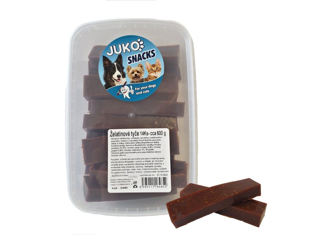 Želatinová pochoutka pro psy ve tvaru tyče.