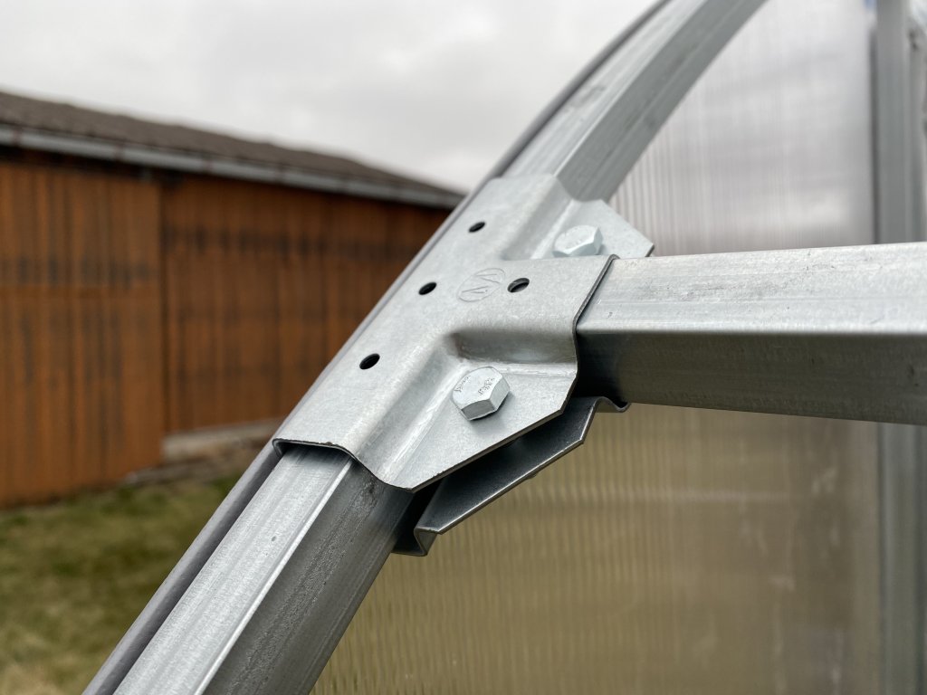 Zpevňovací výztuhy ve formě bočnic pro skleníky LEGI o délce 8 metrů. Bočnice zajistí větší nosnost a odolnost konstrukce nejen proti sněhové zátěži.